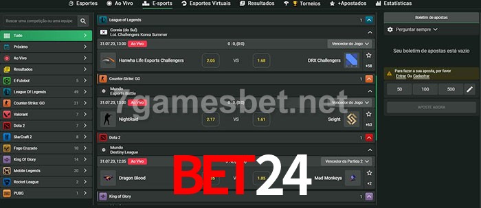 A aposta Bet24 oferece aos jogadores a experiência mais conveniente de apostas em eSports!